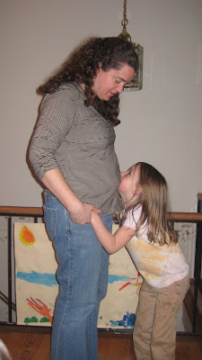 I've been feeling the baby move for a few weeks, but they haven't been strong enough to feel by putting a hand on my stomach, until this week. Tonight I even felt hiccups-which because of the babies position (really low) felt pretty strange! The kids want to feel it kick, but haven't yet. I told them in a few weeks it will be strong enough for them to feel it.
